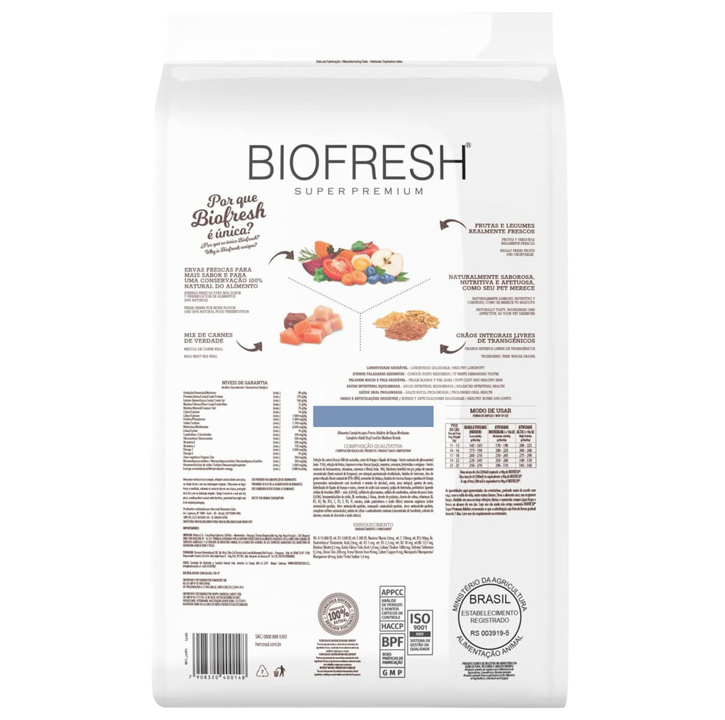 A ração Biofresh é uma Super Premium Natural feito com ingredientes selecionados e frescos, alto inclusão de carnes nobres, sem conservantes e transgênicos e produzidos em uma fábrica de alta tecnologia. Seu peludo vai adorar o sabor e crocância de uma ração com a melhor qualidade do mercado. A alta palatabilidade e desempenho somado com a confiança da marca proporciona uma tranquilidade em sua compra sabendo que fará a melhor escolha para seu pet.
