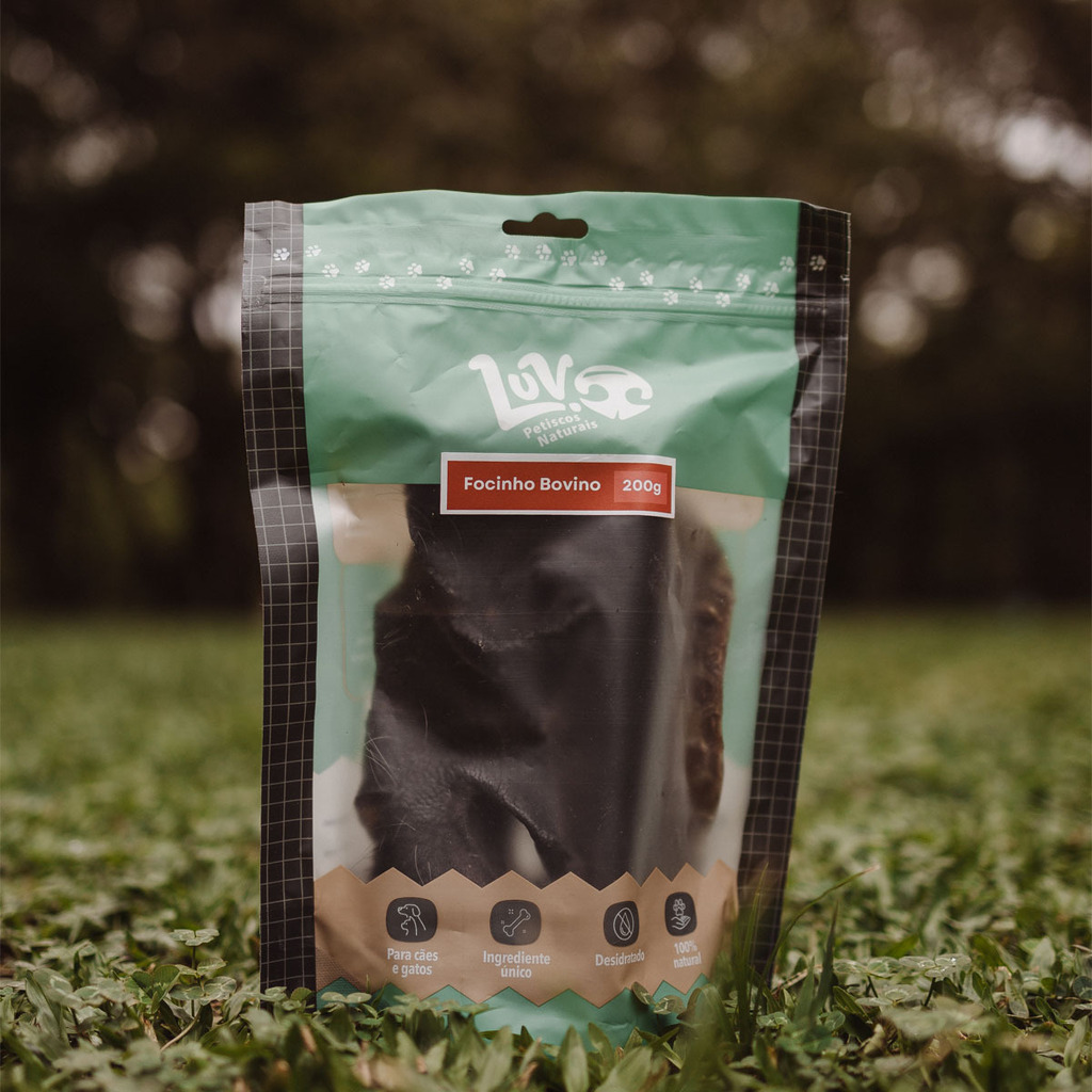 Este mastigável, de uma rigidez moderada, possui uma aparência impactante, pois é feito a partir do nariz e bochechas do boi, incluindo pelos, por isso é recomendado oferecê-lo com menos frequência, de preferência em ambientes externos. Ao entrar em contato com a saliva, pode apresentar um aroma característico de “boi no pasto”.
