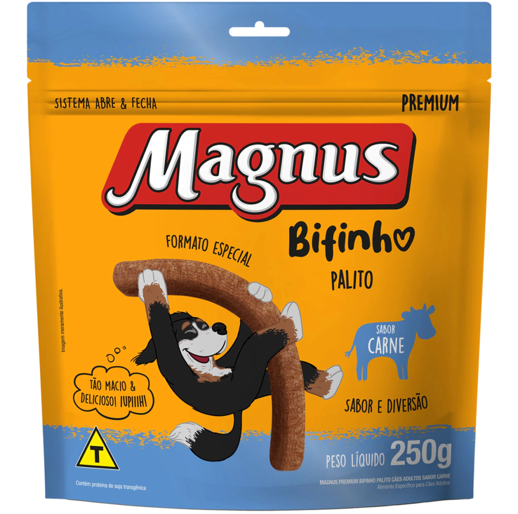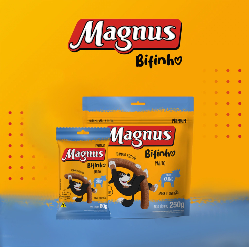 Alimento específico indicado para cães adultos. Aproveite os momentos de diversão e alegria com o seu melhor amigo. Ofereça para ele Magnus Bifinho.