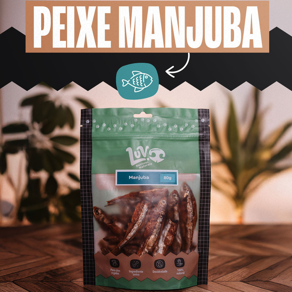 Contém 80 gramas peixe espécie Manjuba.