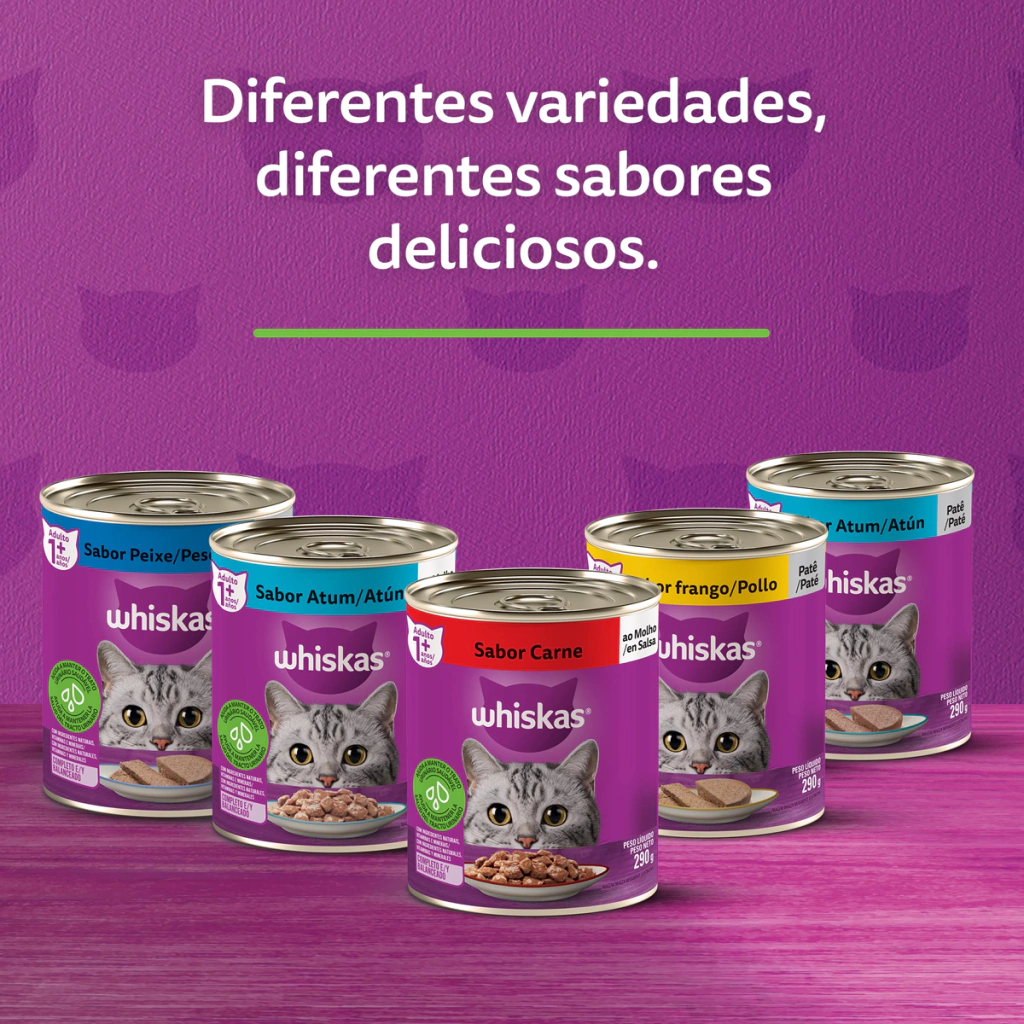 A marca WHISKAS® sabe o que os gatos naturalmente precisam e amam. Por isso, cada lata é preparada cuidadosamente com ingredientes de alta qualidade, proporcionando os nutrientes que eles precisam todos os dias, mantendo-os sempre saudáveis.